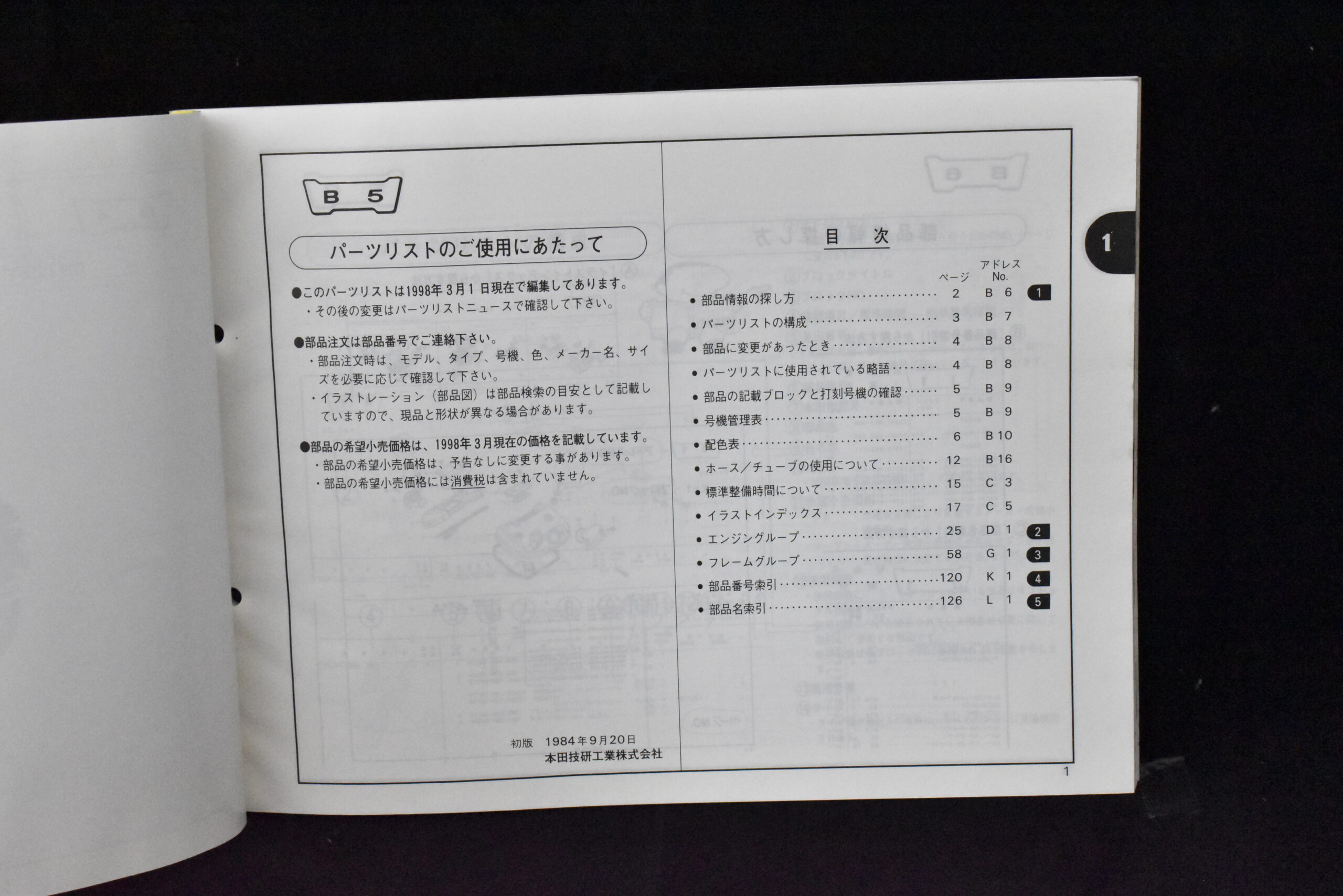 Original parts catalog