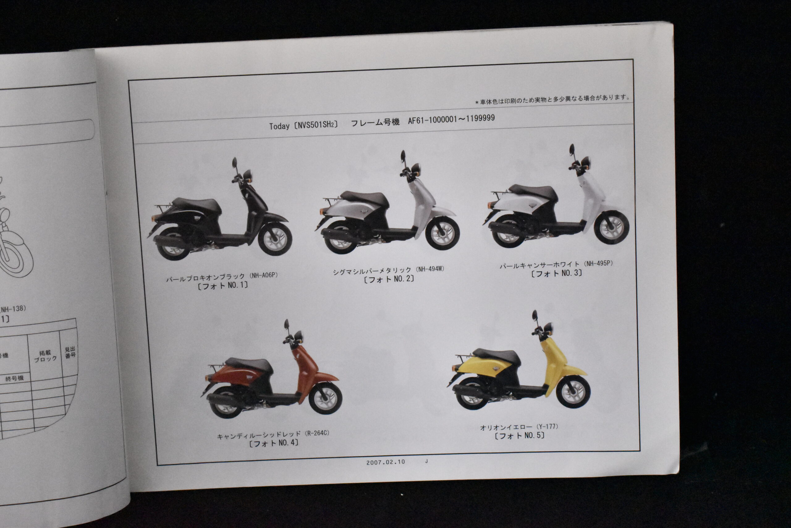 Original parts catalog Honda Today/ Today Deluxe NVS501SH2/4/5/6/7